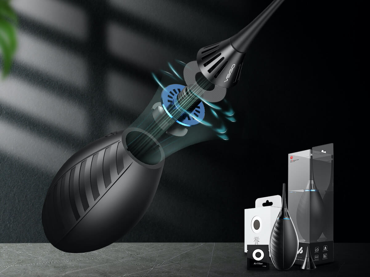 With a large air volume, effortless handling, and thoughtfully considered features—including an elongated & flexible spout to reach even more places, magnetic buckle & carabiner attachment with protective sleeve, and elastic anti-dust fabric—the award-winning VSGO one-way air blower is a highly functional complement to your on-the-go routine.