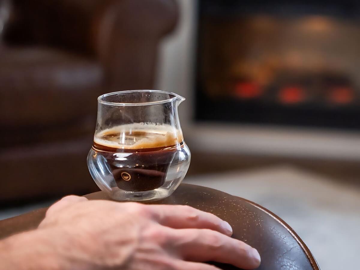 KRUVE's EQ Glasses feature a hand-blown double- to single-walled design: the double-walled base insulates to help keep your coffee warm and the glass cool to the touch, while the single-walled lip yields a more comfortable drinking experience and immediately engages the senses by allowing you to feel the warmth of your coffee before it reaches your palate.