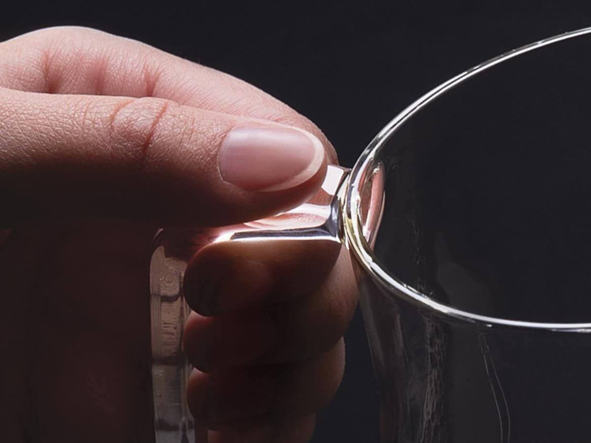 A comfortable glass handle provides a firm grasp for pouring while staying cool to the touch so your fingers do, too.