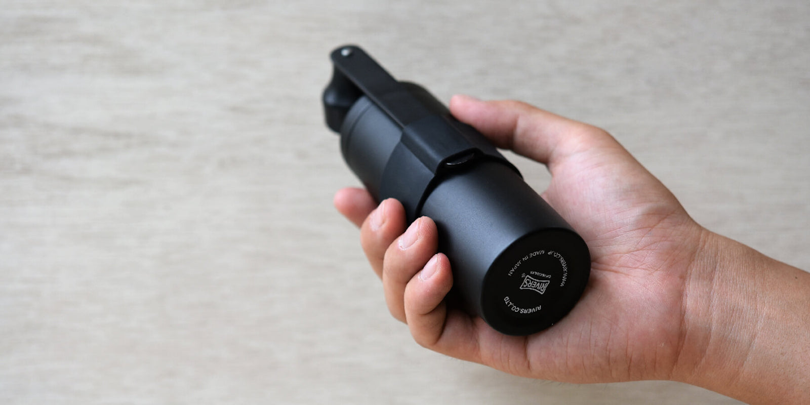 Ultra compact for ultimate portability, Grit features the Rivers name prominently on its stylish silicone grip band. Carefully prototyped and perfected to house the handle securely enough that it does not come into contact with the grinder, this thoughtful design element helps protect the beautifully minimal finish of your grinder—available in your choice of Silver or Matte Black.